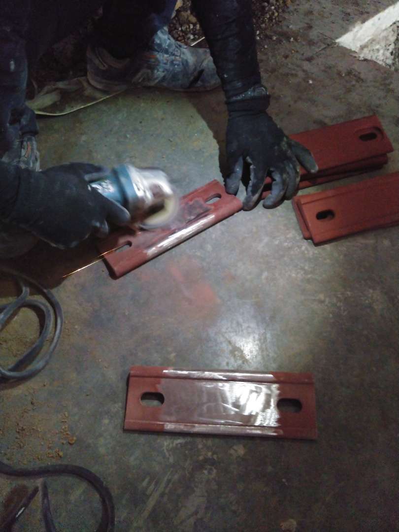 ・炭素繊維シートの端部を、鋳鋼製の専用定着金物(鋳鋼プレート)に巻きつけます。