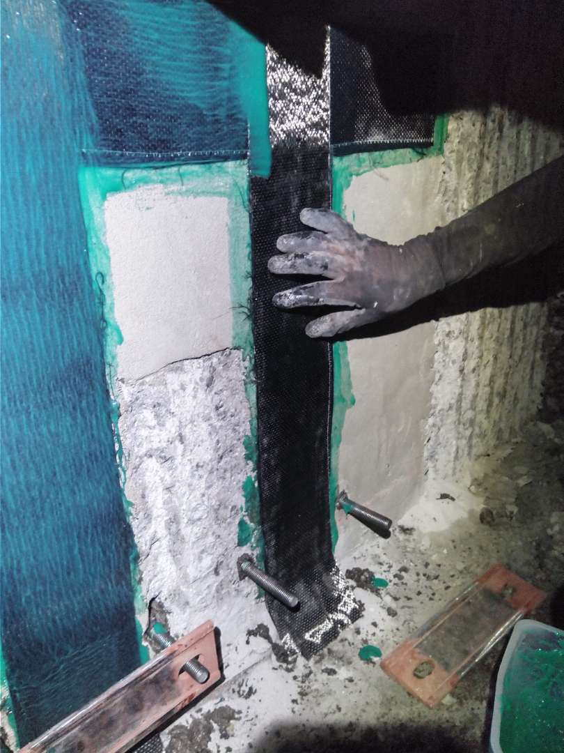 ・開孔を設けた梁に、炭素繊維シートをエポキシ樹脂で梁表面に貼着します。