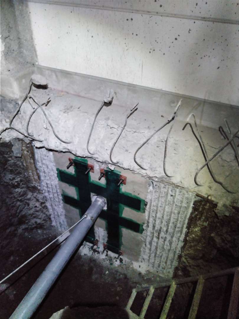端部定着金物を使うことで、炭素繊維シートの剥離・浮きなどを抑制しつつ