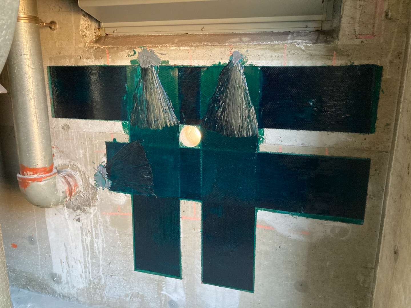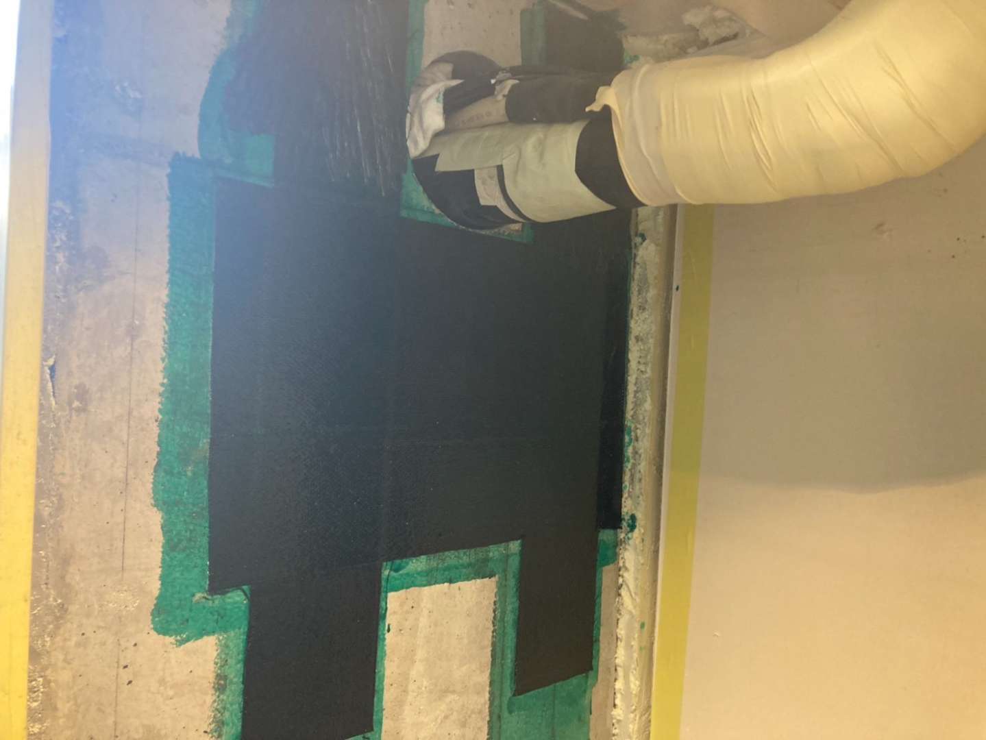 コンクリート構造物の表面に炭素繊維シート(Carbon Fiber Sheet)を樹脂で貼り付け、