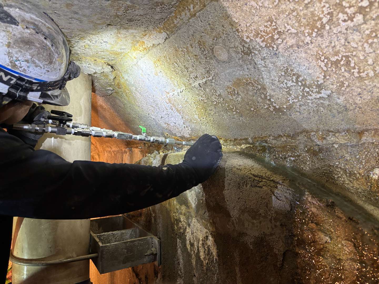 バンデフレキシンはさまざまな施工状況に応じて圧力と重合硬化時間を調節でき、水圧がかかっている状況で止水作業が可能です。