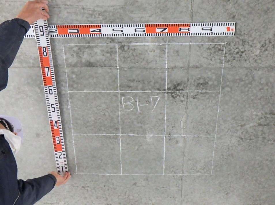 一般社団法人日本非破壊検査工業会(NDT)のコンクリート構造物の配筋探査技術者の資格者が現場に赴き測定する事が義務化されておりますので本試験も資格者が測定しました。
