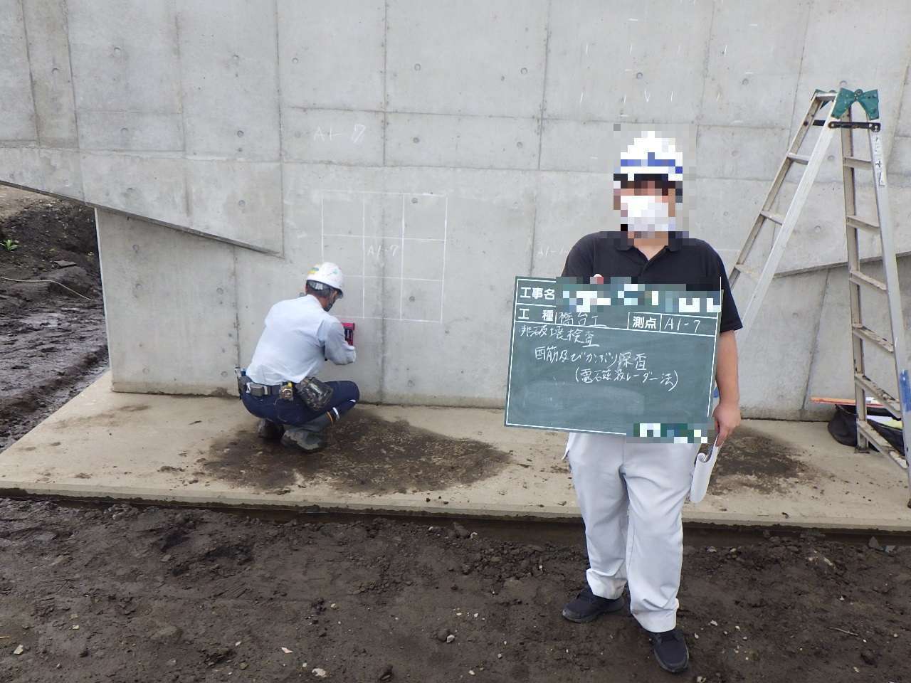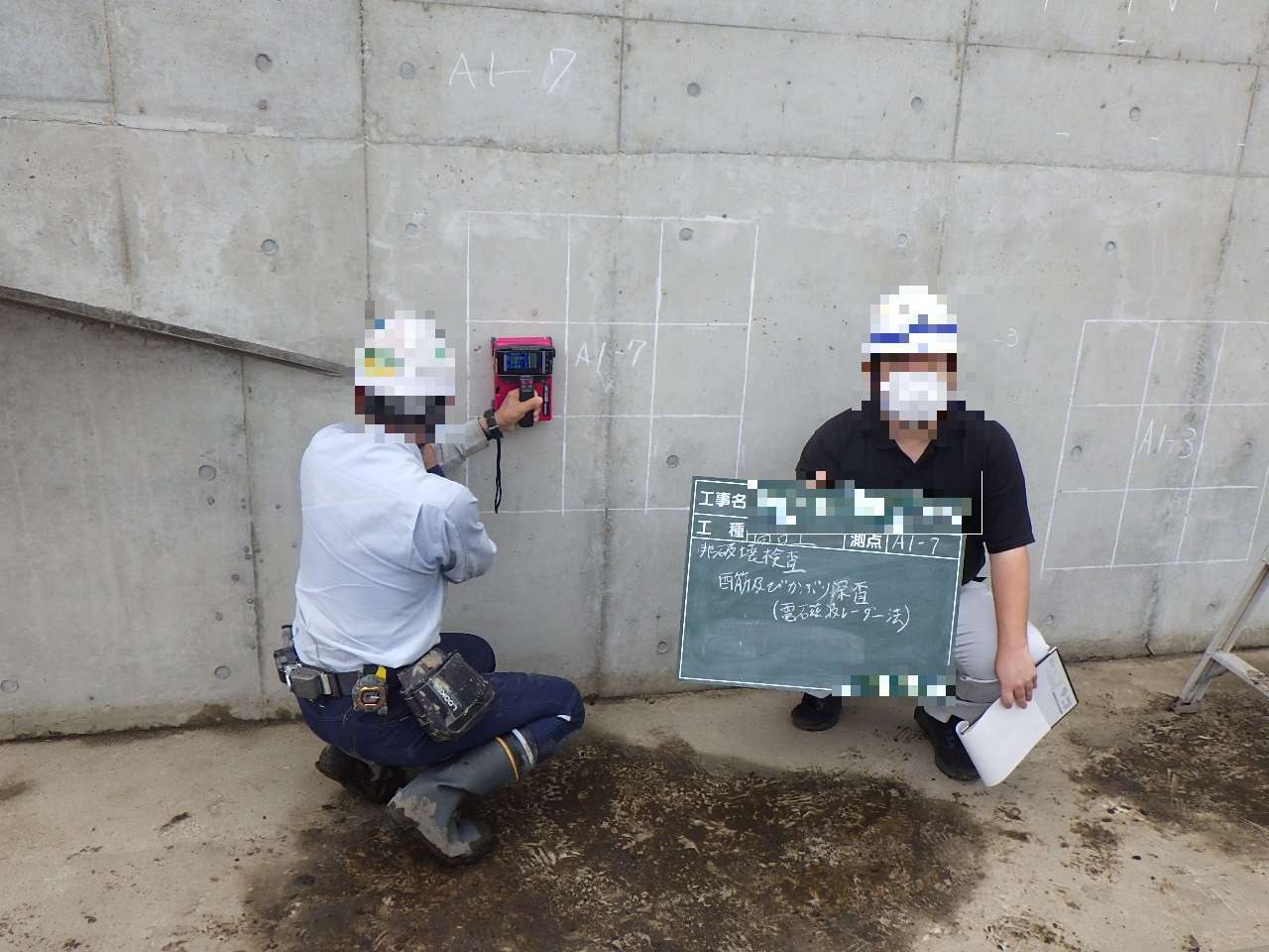一般社団法人日本非破壊検査工業会(NDT)のコンクリート構造物の配筋探査技術者の資格者が現場に赴き測定する事が義務化されておりますので本試験も資格者が測定しました。