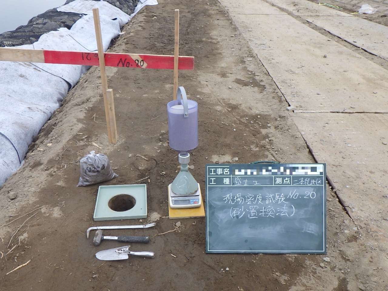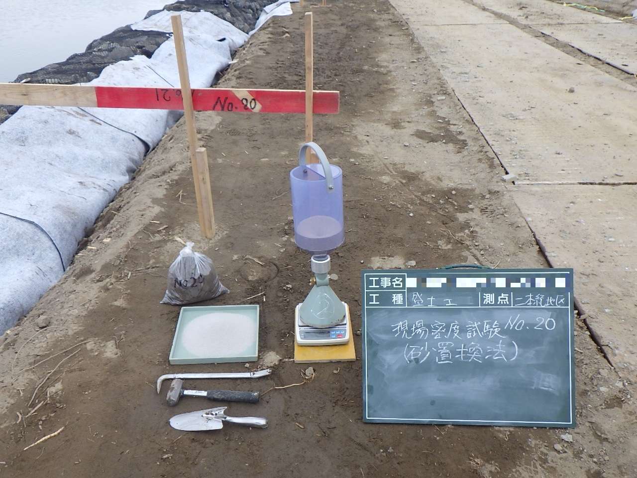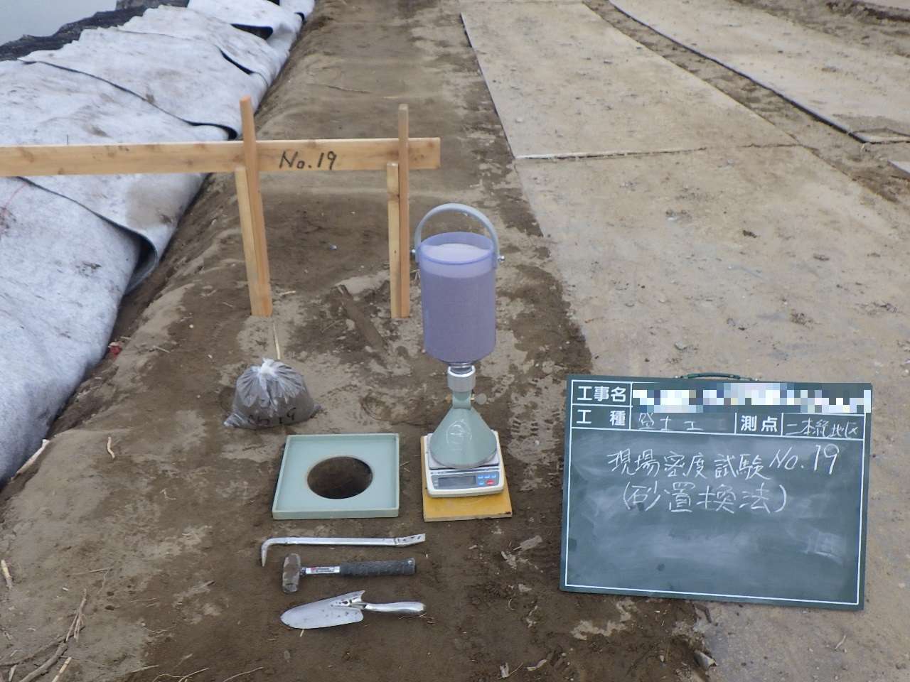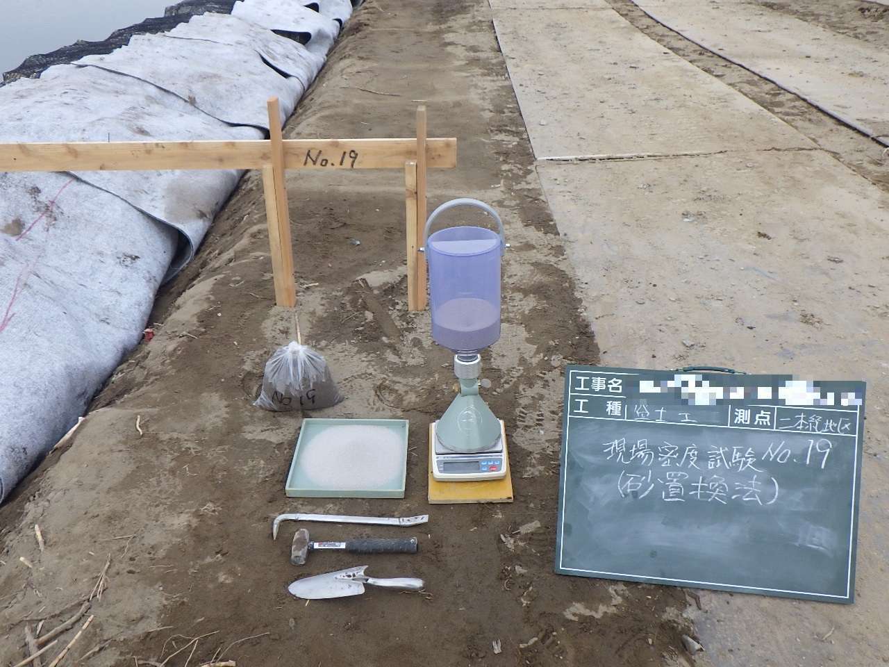 土の体積を求める方法の一種です。「掘り取った試験孔に密度が既知の砂材料を充填し、その充填した質量から試験孔の体積を求める方法」と定義されています。土の体積を直接測定することは困難なので、予め密度のわかっている試験用砂を土のに置き換えて体積を測定の調査を行いました。