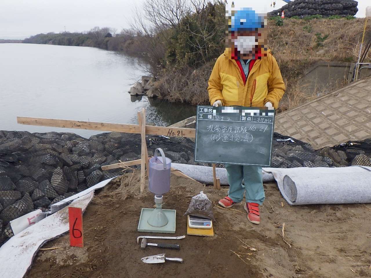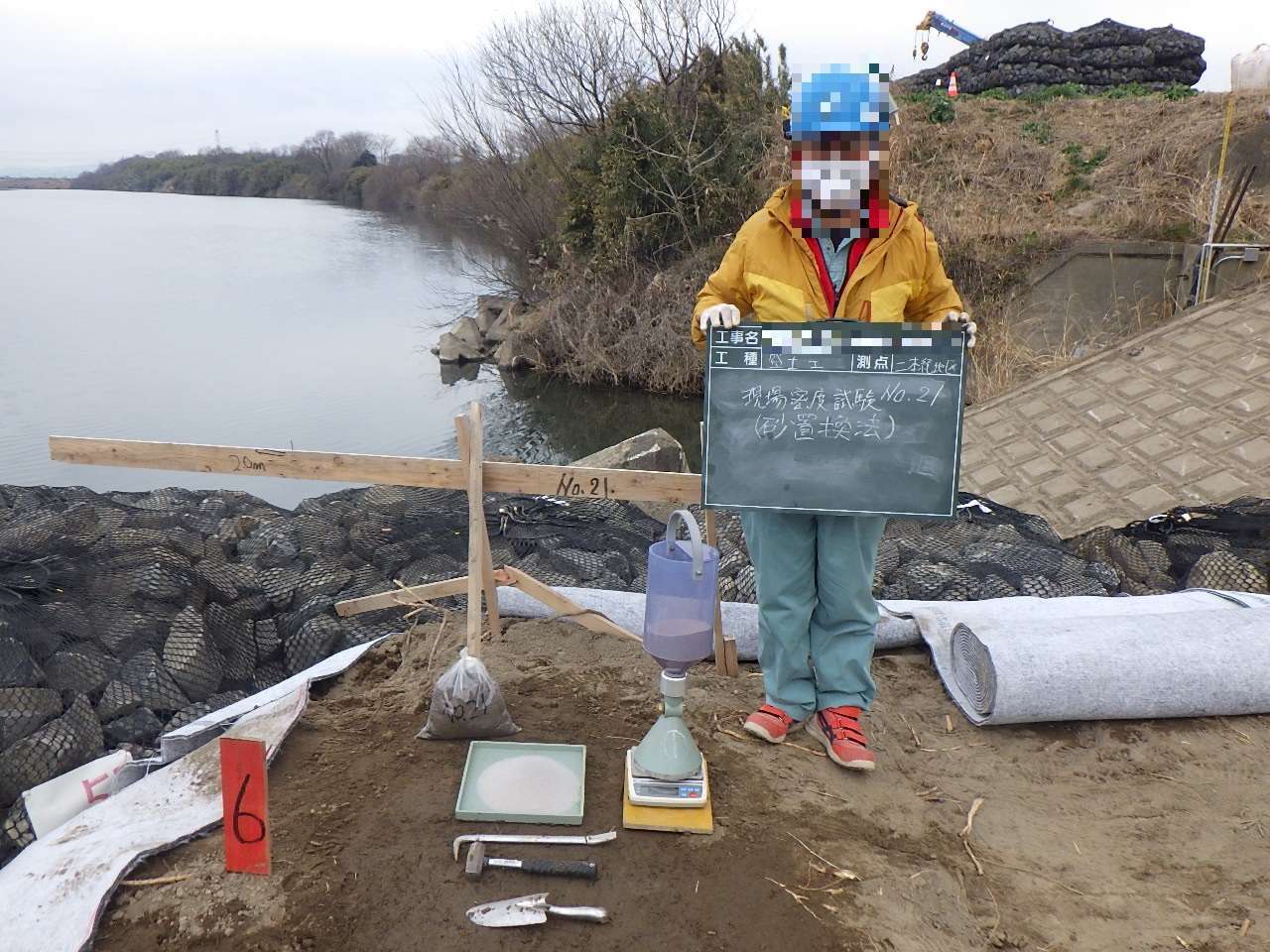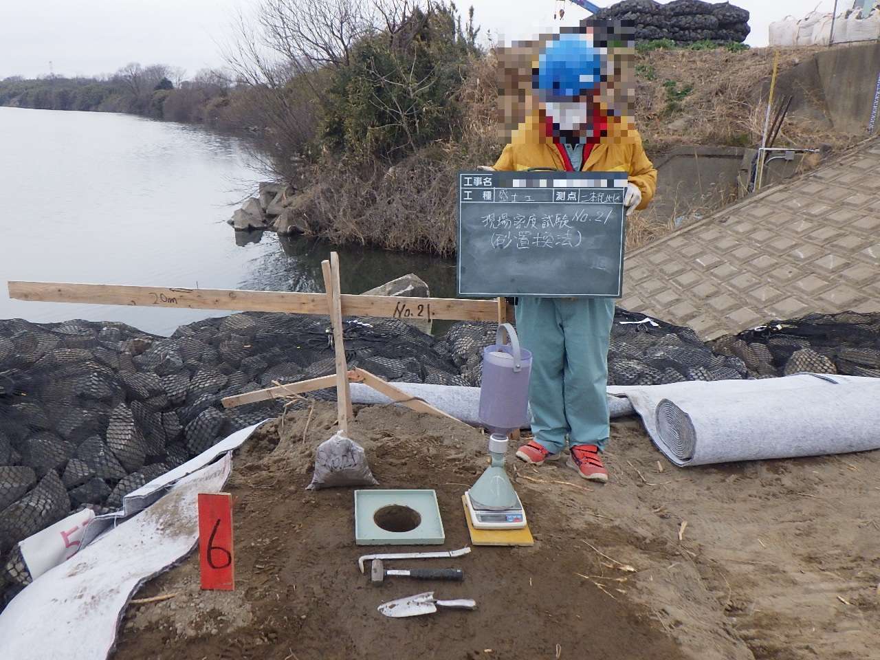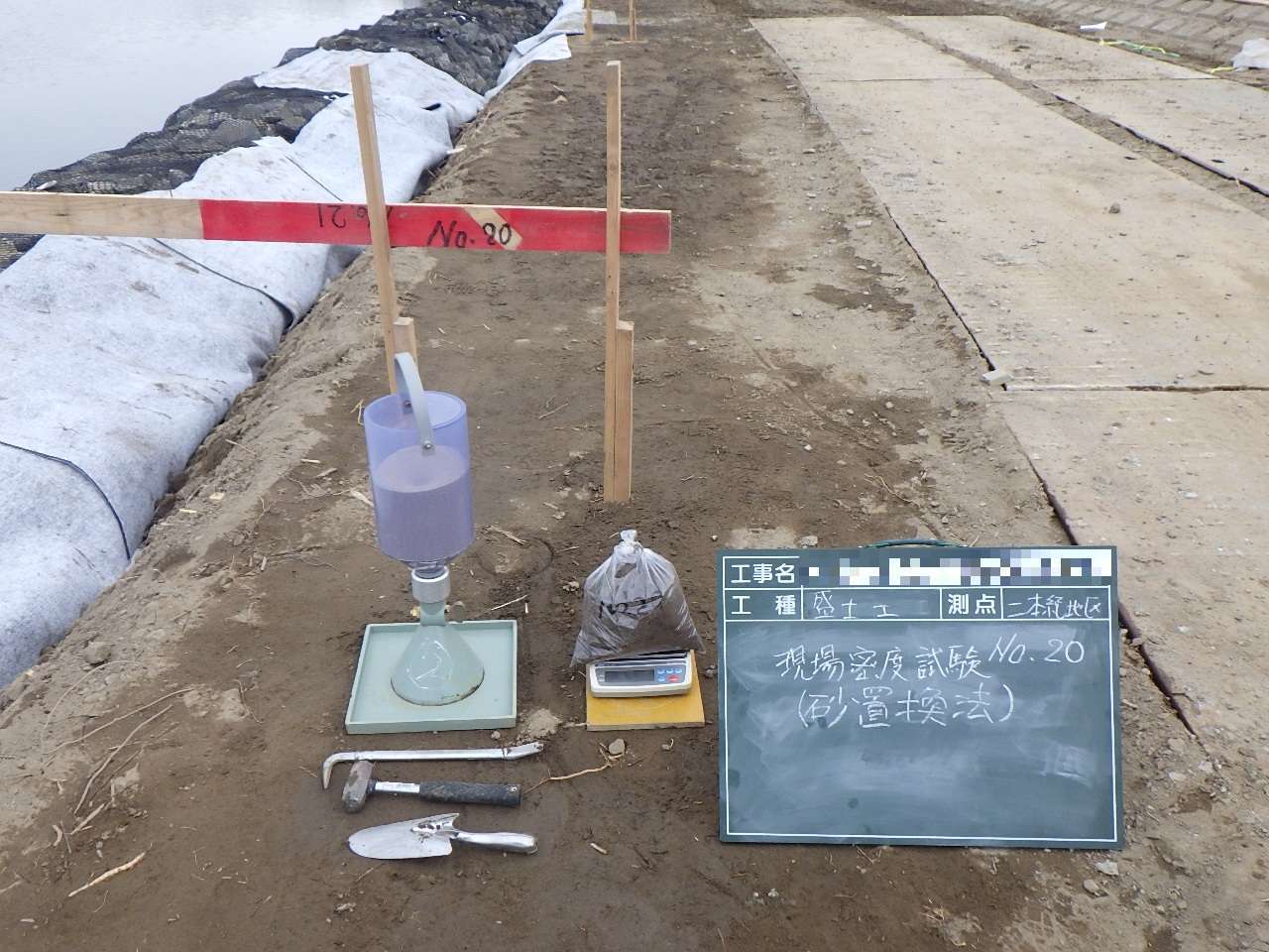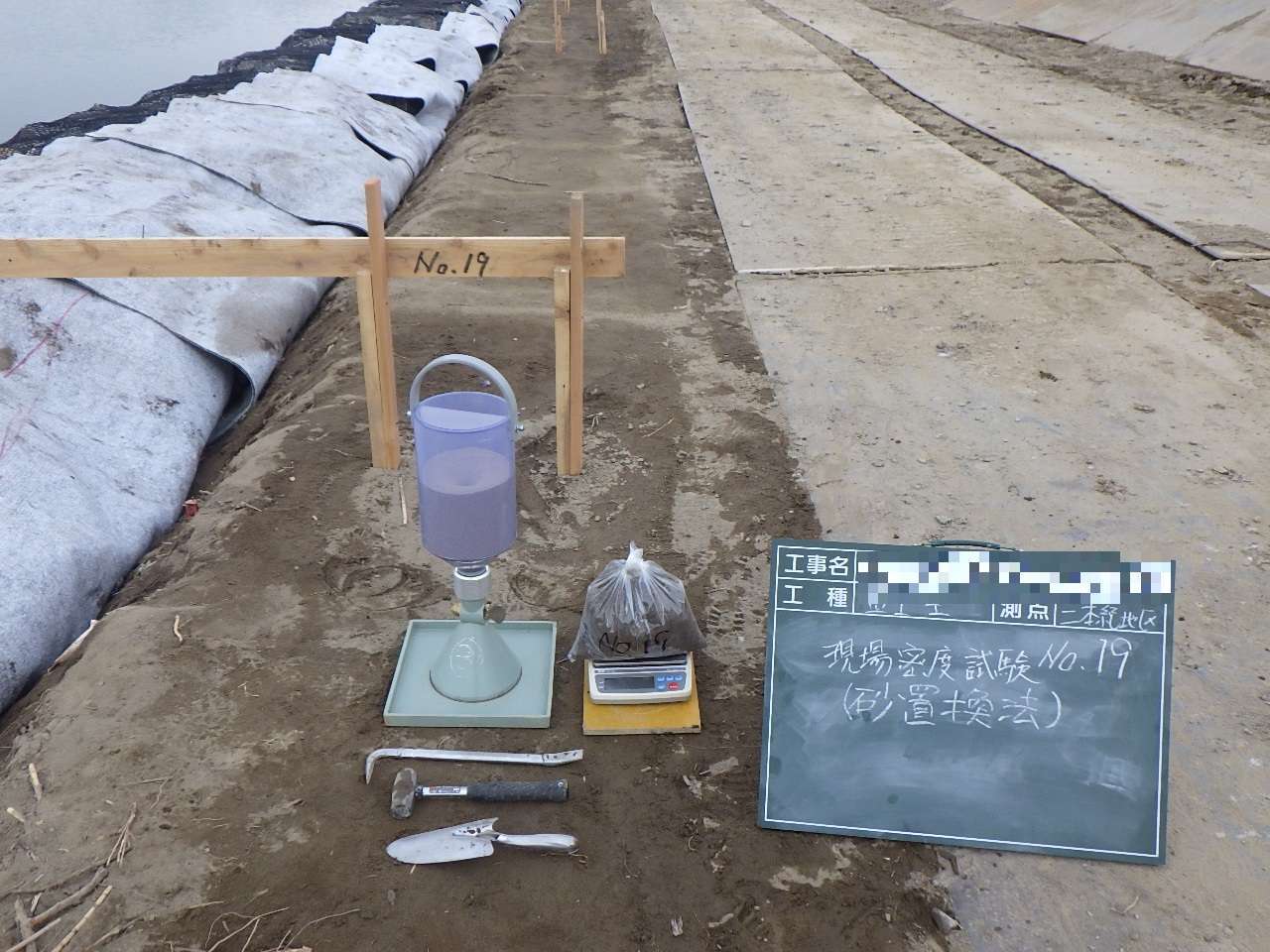 土の体積を求める方法の一種です。「掘り取った試験孔に密度が既知の砂材料を充填し、その充填した質量から試験孔の体積を求める方法」と定義されています。土の体積を直接測定することは困難なので、予め密度のわかっている試験用砂を土のに置き換えて体積を測定の調査を行いました。