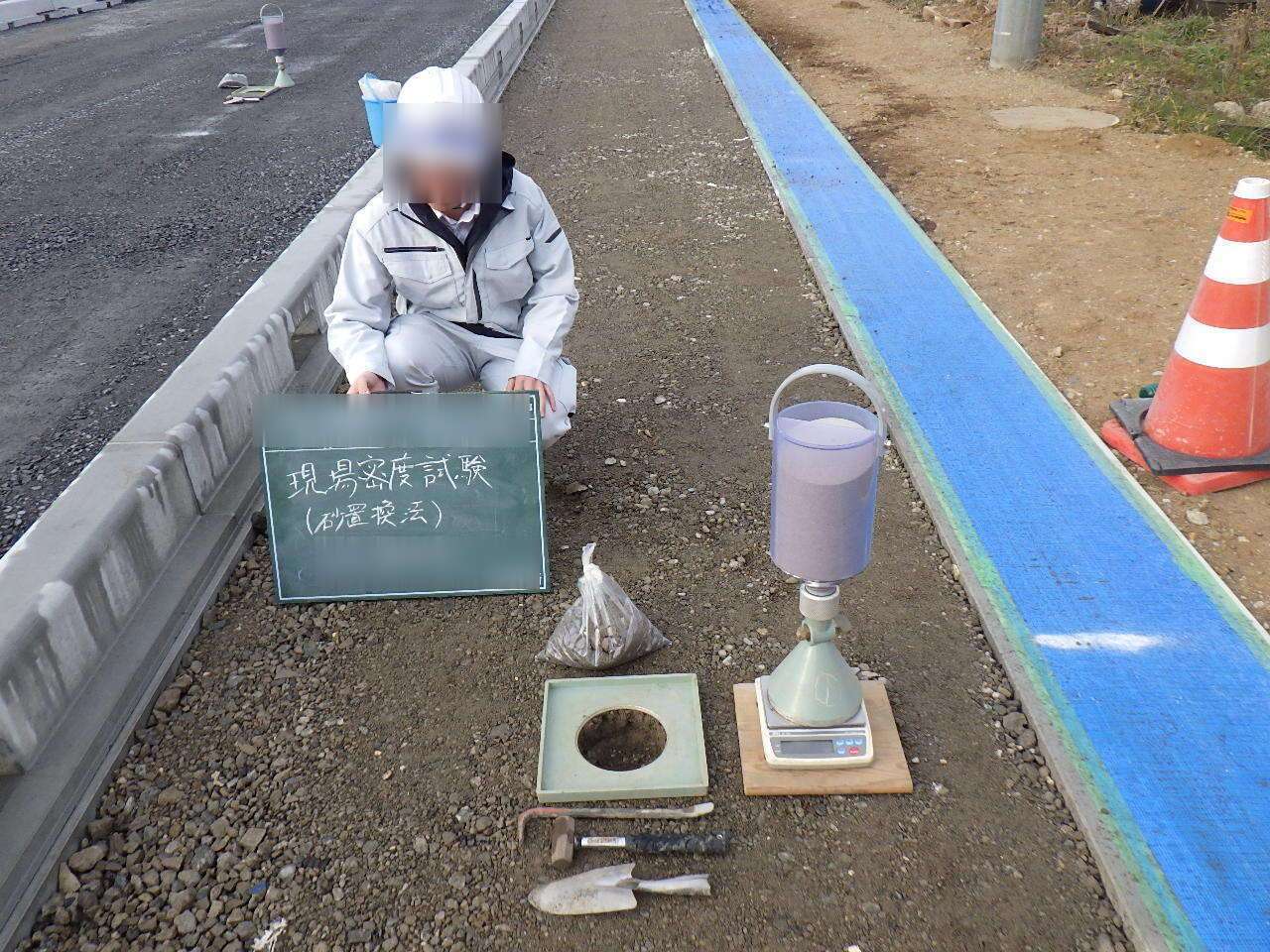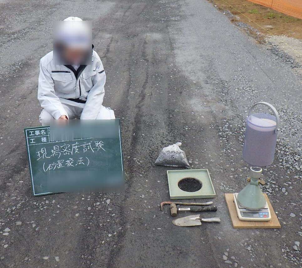 現場密度試験 砂置換法 下層路盤 茨城県つくば市