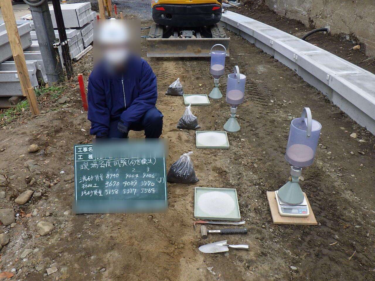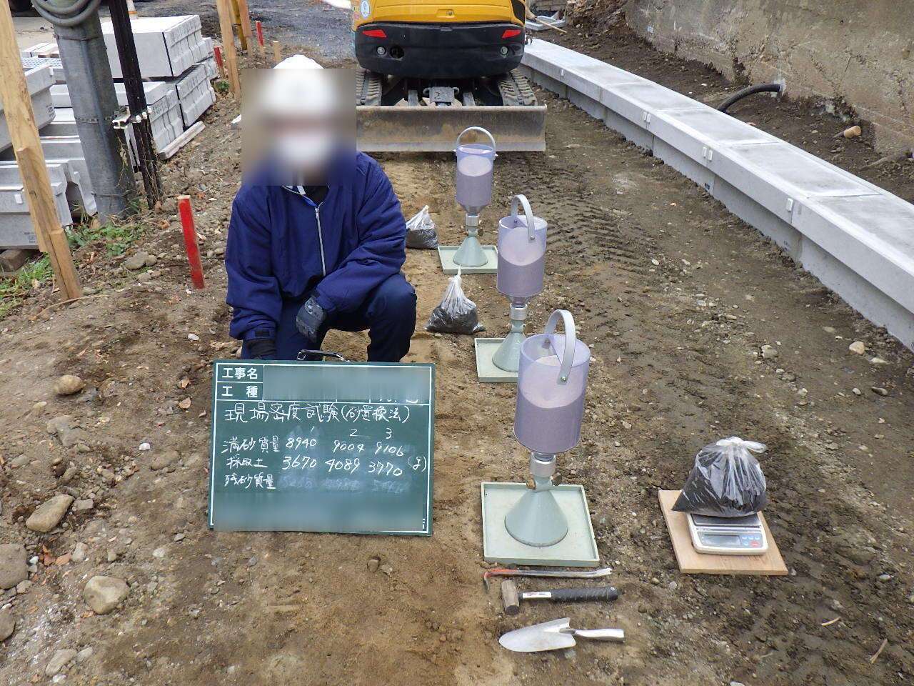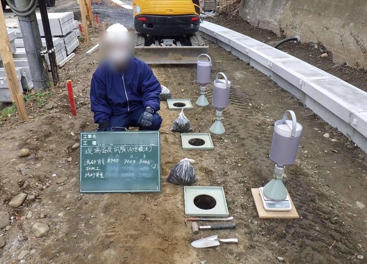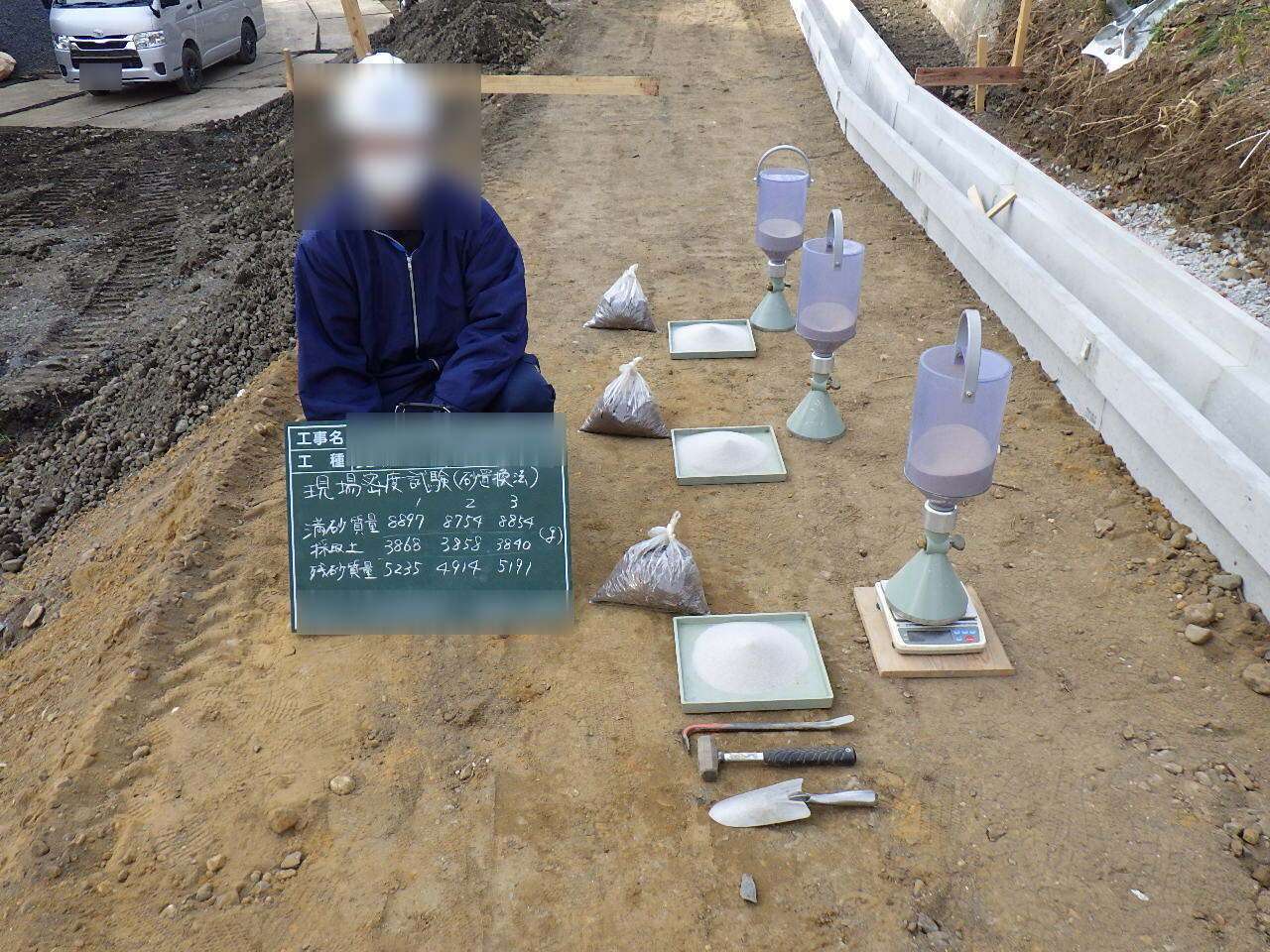 土の体積を求める方法の一種です。「掘り取った試験孔に密度が既知の砂材料を充填し、その充填した質量から試験孔の体積を求める方法」と定義されています。土の体積を直接測定することは困難なので、予め密度のわかっている試験用砂を土のに置き換えて体積を測定の調査を行いました。