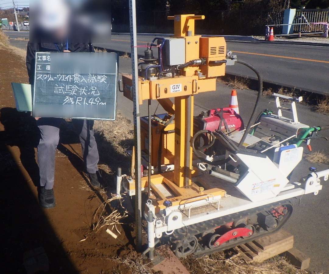 当該地における地盤の土質・支持力及びN値を推定し、設計及び施工の基礎資料を得ることを目的として、全自動試験機でのスクリューウエイト貫入試験を実施しました。