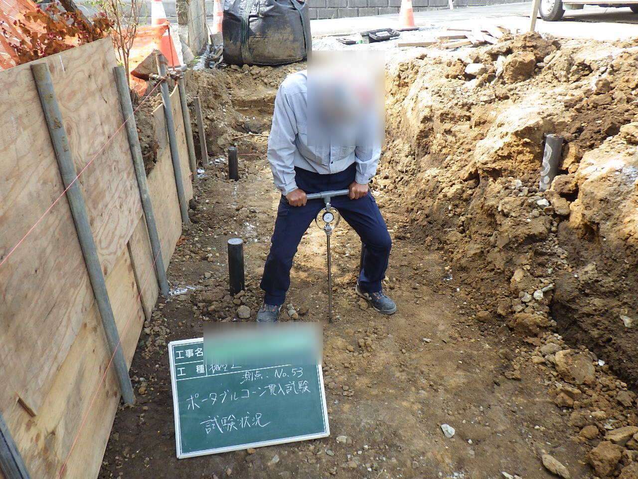 本調査は現況地盤の支持力特性を把握することを目的として、ポータブルコーン貫入試験を実施しました。