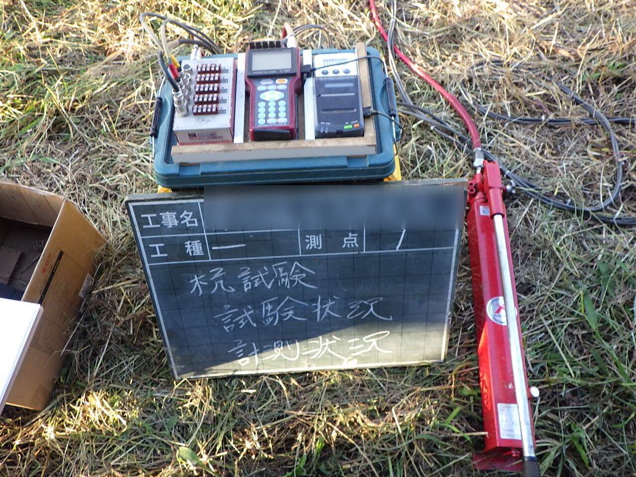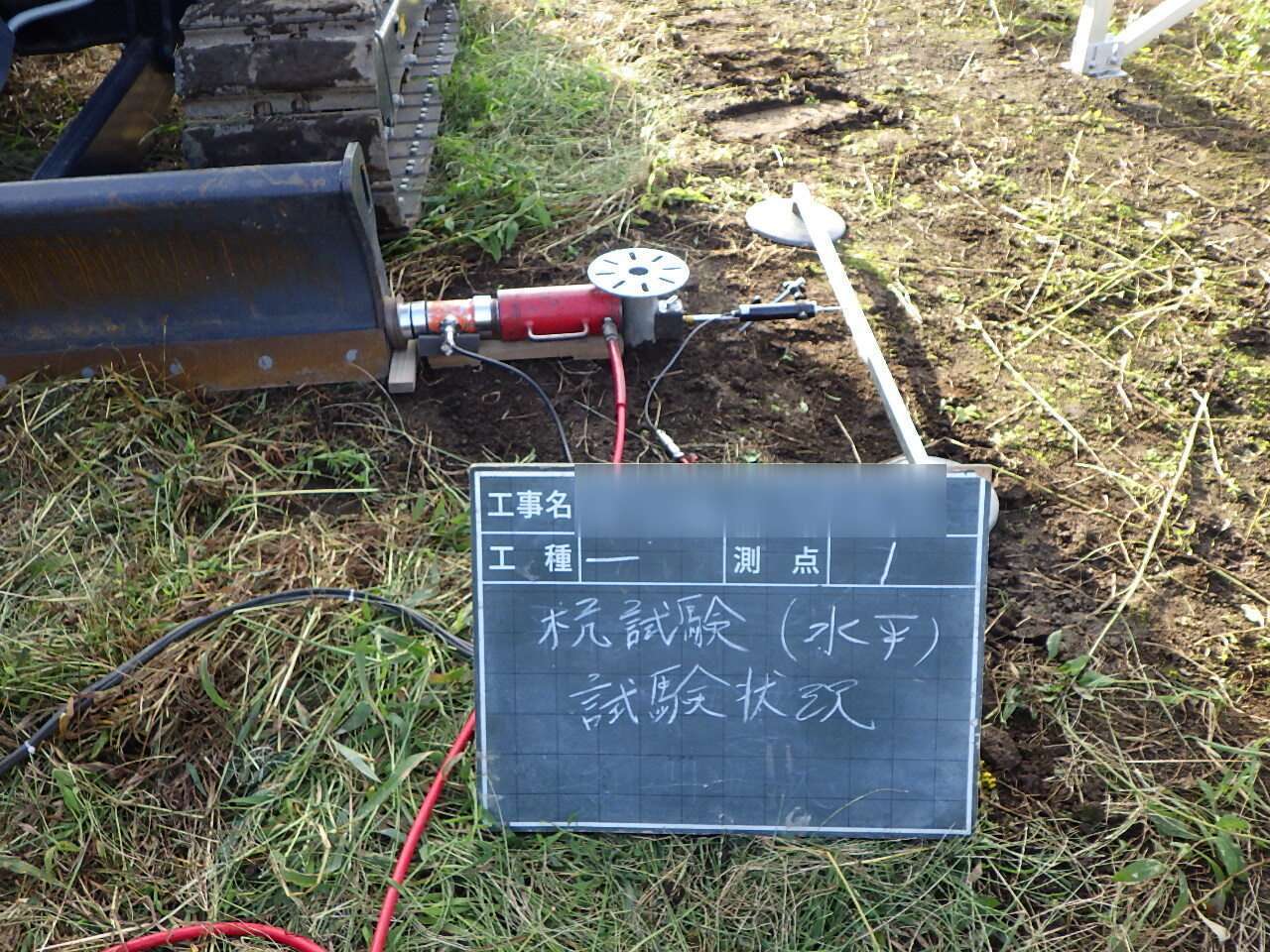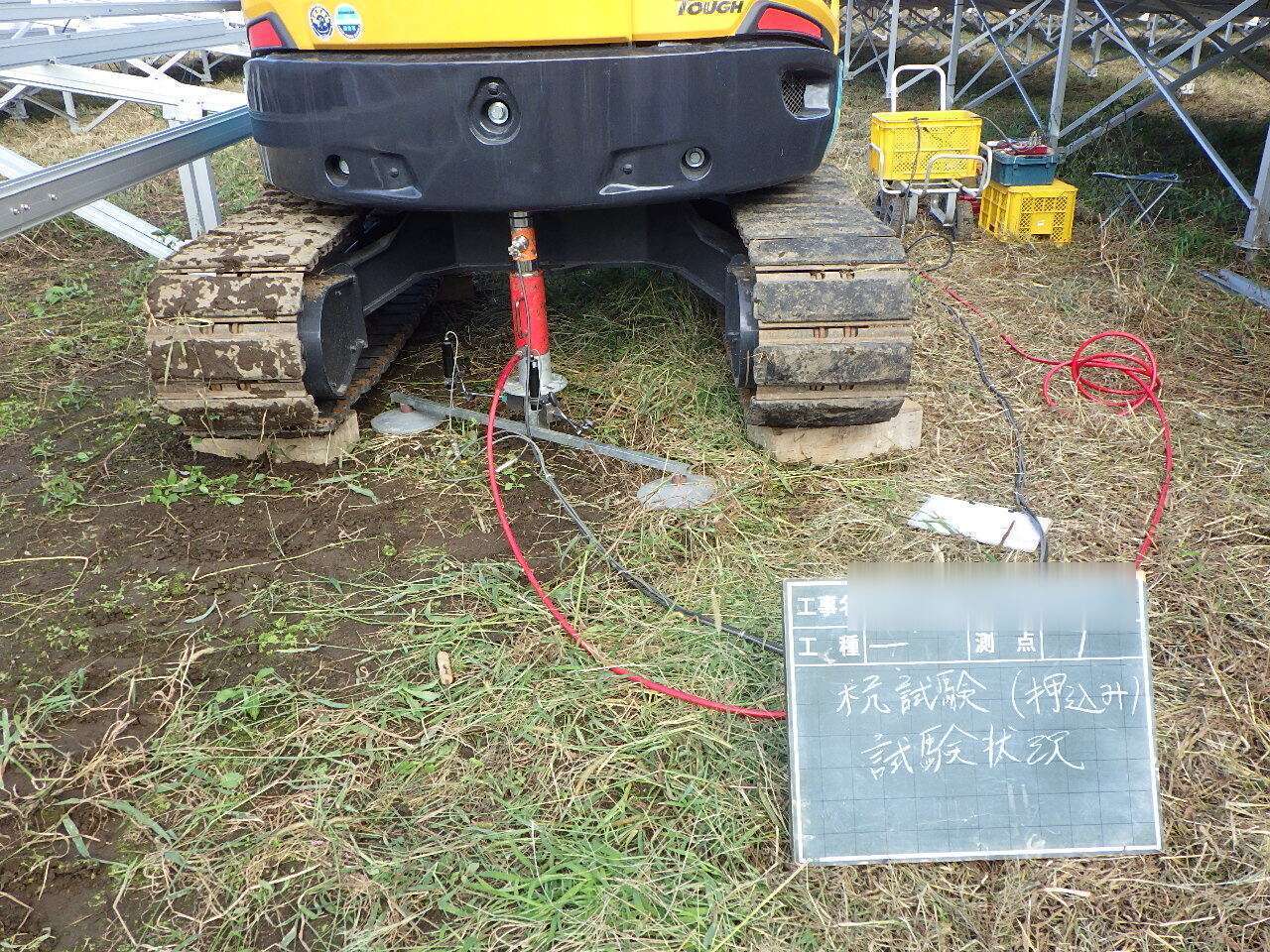 当該地において、打設した杭の支持力を確認することを目的として、杭の押込み試験・杭の引抜き試験・杭の水平板載荷試験を実施しました。
