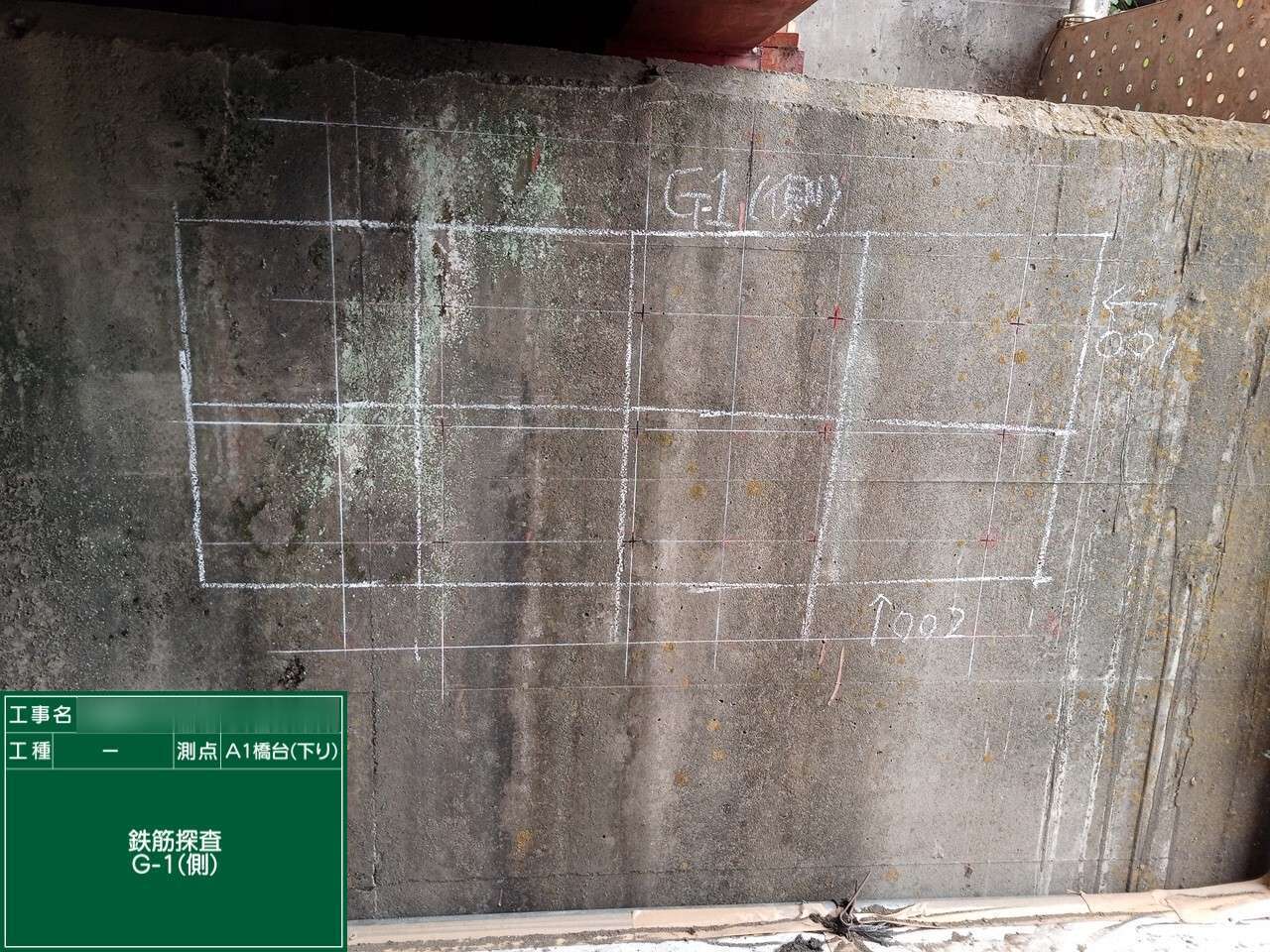 本調査はあと施工アンカー工事の際の鉄筋切断や埋設物の損傷事故を防ぐため、施工作業前に、コンクリート構造物の鉄筋の配筋状態・かぶり厚などの調査を行いました。