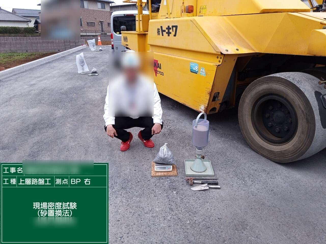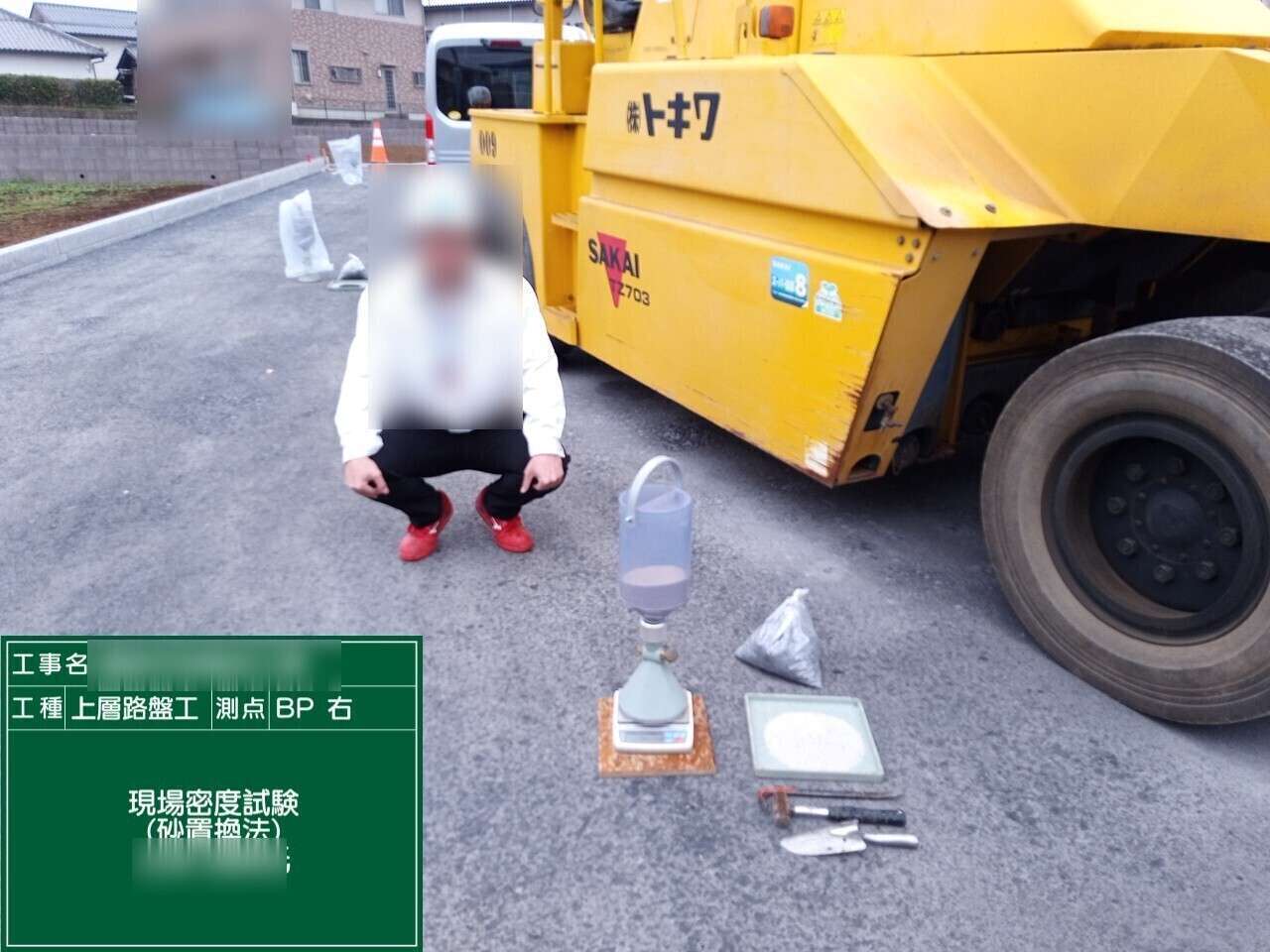 土の体積を求める方法の一種です。「掘り取った試験孔に密度が既知の砂材料を充填し、その充填した質量から試験孔の体積を求める方法」と定義されています。土の体積を直接測定することは困難なので、予め密度のわかっている試験用砂を土に置き換えて体積を測定する調査を行いました。