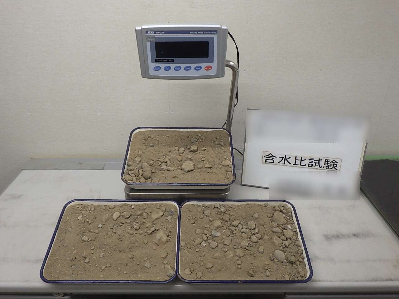 土の含水比試験では、土に含まれる水分の土粒子に対する質量比を測定します。