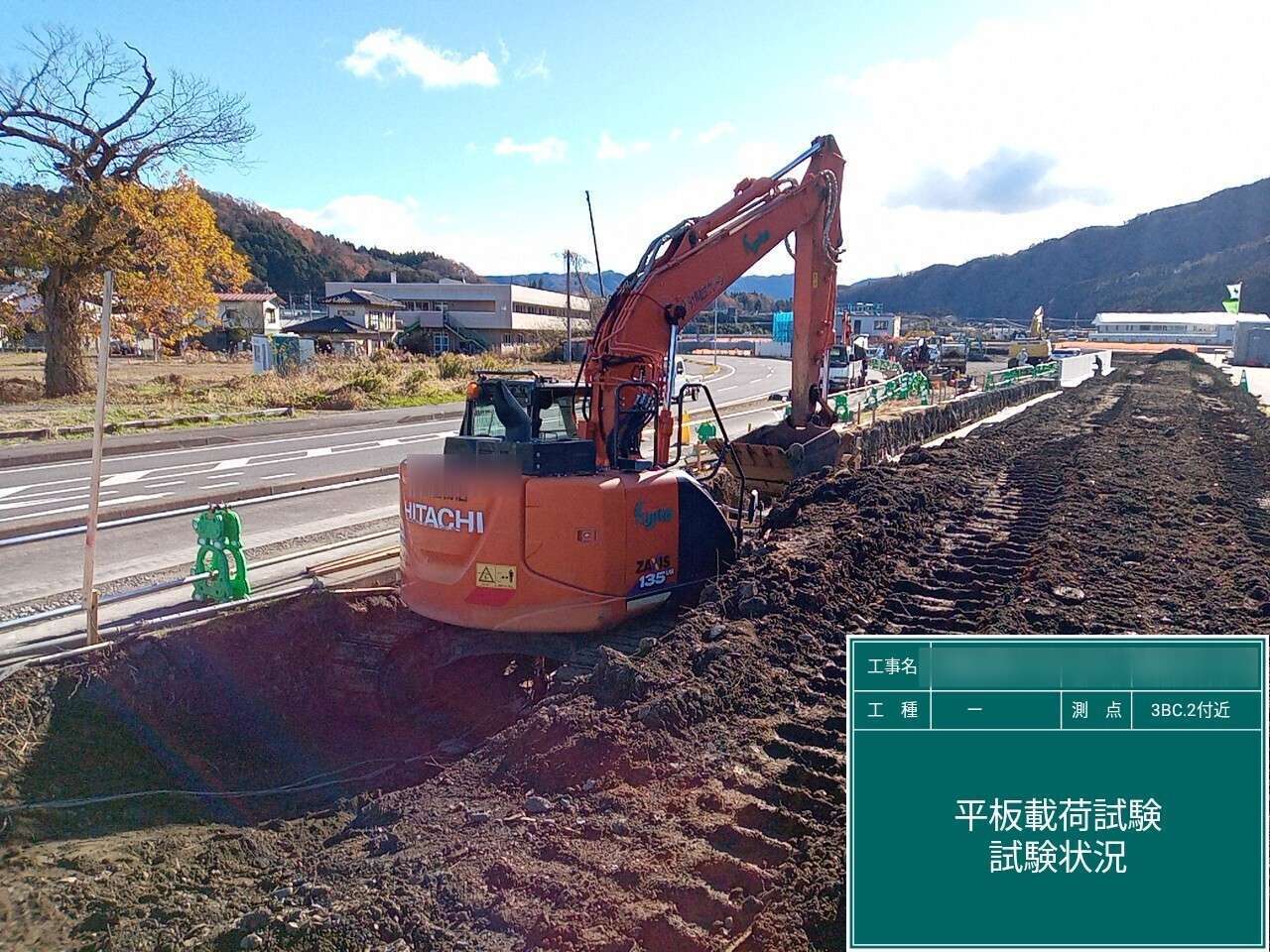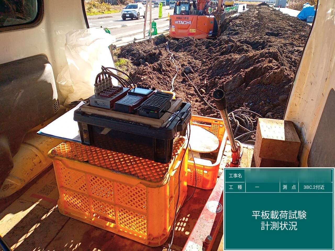 本試験はL型擁壁の基礎底面において平板載荷試験を1箇所行い、その支持力を確認する試験です。